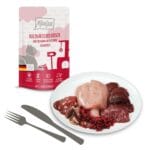 Mjamjam Deer & Turkey with Cranberries es un alimento húmedo completo y natural para gatos adultos. La comida consiste en un 67% de carne de venado y pavo, complementada con arándanos y valiosas vitaminas y minerales. La receta está completamente libre de cereales, gluten, azúcar, lactosa y aditivos artificiales. Es ideal para gatos sensibles. Con un alto contenido de humedad, también favorece una hidratación saludable.